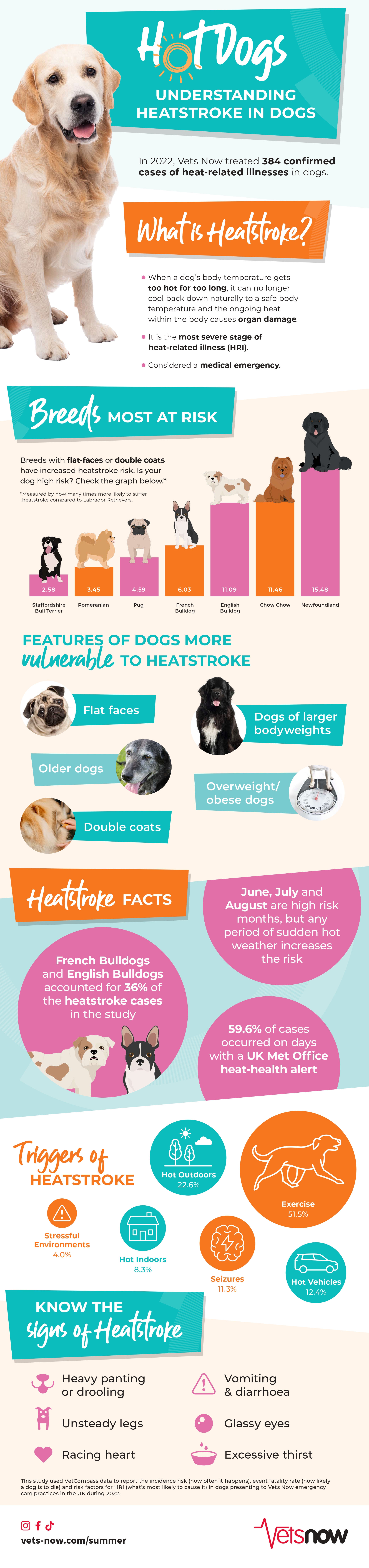 VetCompass at Royal Veterinary College reviewed anonymised clinical records from 167,751 dogs treated at Vets Now’s 60 emergency clinics in 2022 to identify all dogs diagnosed with heat-related illness (heatstroke). This is what the study found: